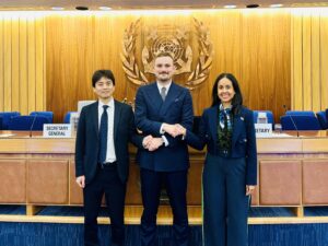 Left to Right: Ryohei Sakai (Project Hull), Technical Solution Department, ClassNK, Alex Vainokivi, Innovation Manager, SRC Group and Ginette Sophia Testa Barnett, Ambassador and Permanent Representative of Panama to the IMO